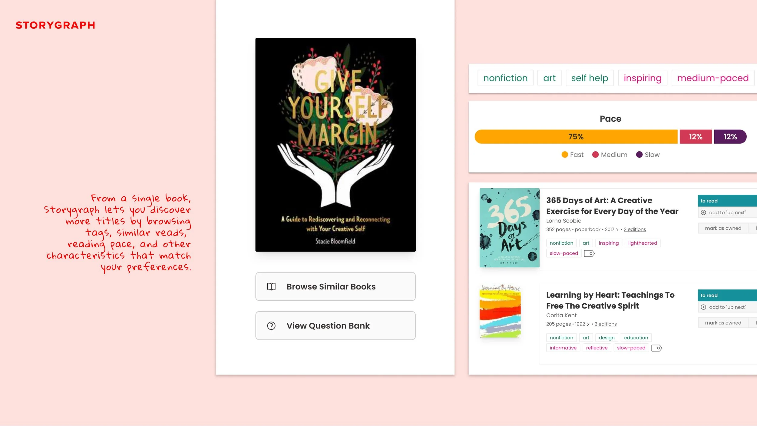 Storygraph. The platform is designed to align your reading with your mood, values, and past preferences.