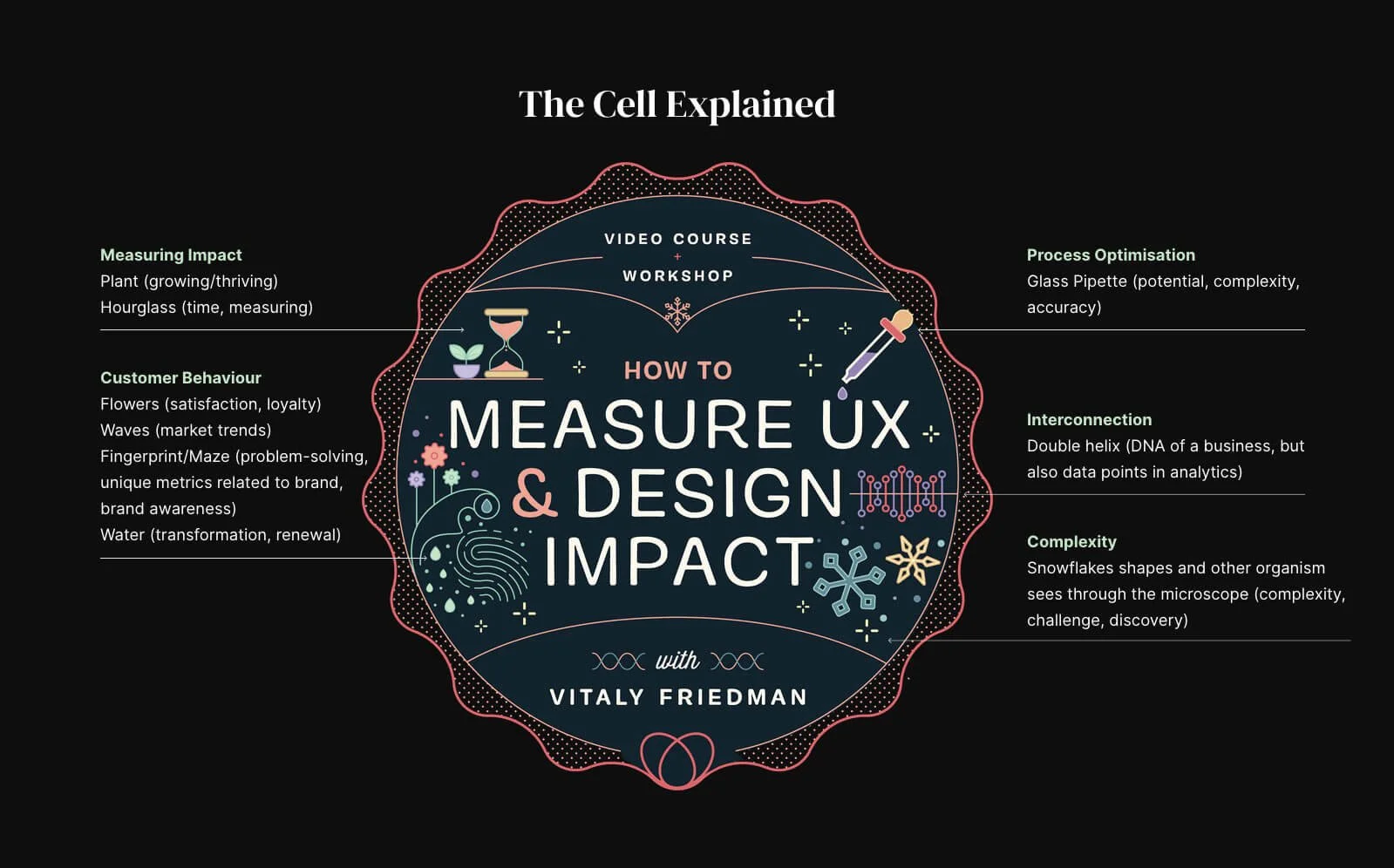 This "UX Cell" brings together all the core ideas of the course through visual metaphors tied to measurement, behaviour, and design complexity.